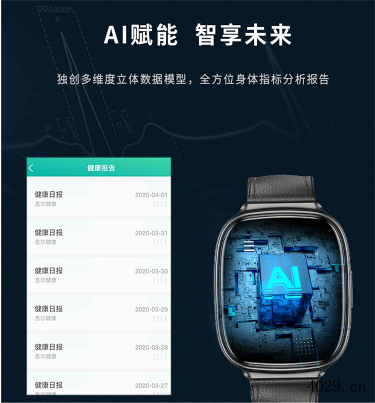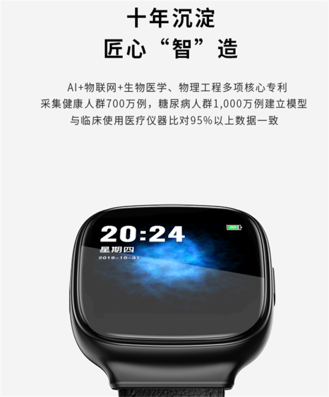 应之健康智能手表是陕西思尔生物科技有限公司经过十多年自主研发、生产出的一款智能采集终端。十余年来,公司通过对1000万人次的持续追踪、监测,数据收集、挖掘、整理,成功创建个人数学模型,运用独创算法,为用户健康提供个性化服务。应之手表通过人体手腕桡动脉采集生理数据,经5G/4G∧WiF网络实时传输,由思尔数据处理中心进行运算、分析、评估。客观反映人体血糖、尿酸、血压、心功能、肺功能、脑功能、肾功能、用药评估等多项数据,并为用户推送相应的疾病预警提醒,实时管理用户健康。目前该产品已申请注册国内外30余项核心专利技术。