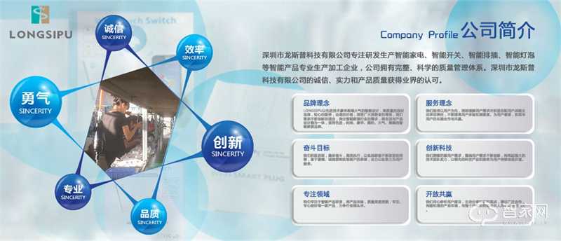 品牌理念:LONGSIPU以先进技术豪华高端大气的智能设计,高质量的选材选择,贴心的服务,合理的价格,深受广大消费者的青眯,我们秉承不断创新的理念,突出智能家装行业的需求,将生活与产品设计融为一体,坚持先进,时尚、豪华、简约、大气、高端的智能家居品牌。