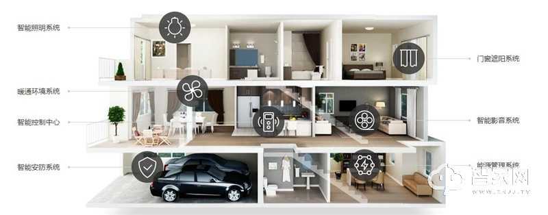 智能控制中心、智能照明系统、暖通环境系统、智能安防系统、能源管理系统、智能影音系统、门窗遮阳系统等七大系统。