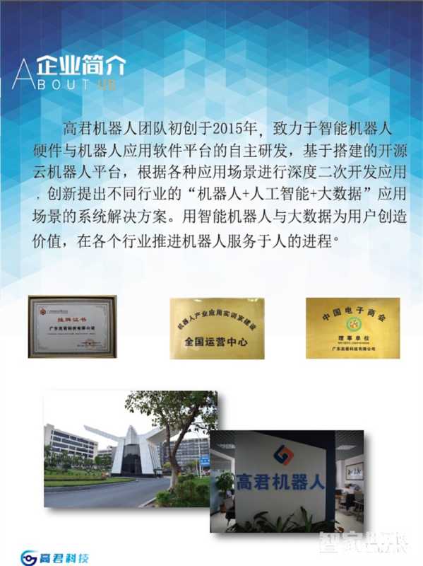 广东高君科技有限公司是高君集团旗下专注为合作伙伴提供机器人与大数据产业应用解决方案的专业机构。