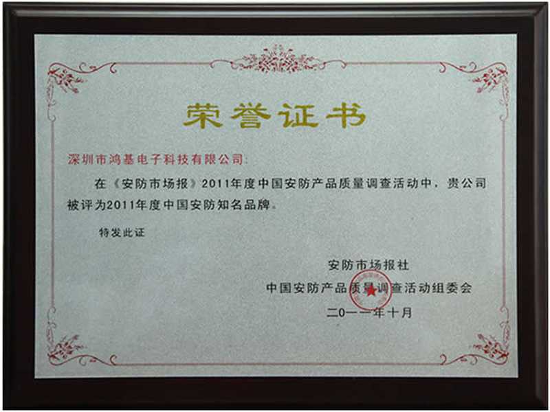 2012年:深圳市鸿基电子科技有限公司为了着力打造鸿基自主品牌“KiVOS金威士得”,主攻以无线技术的智能家居、安防电子产品行业,开拓海外市场,荣获“中国知名品牌”、光明新区“先进企业”等荣誉称号。