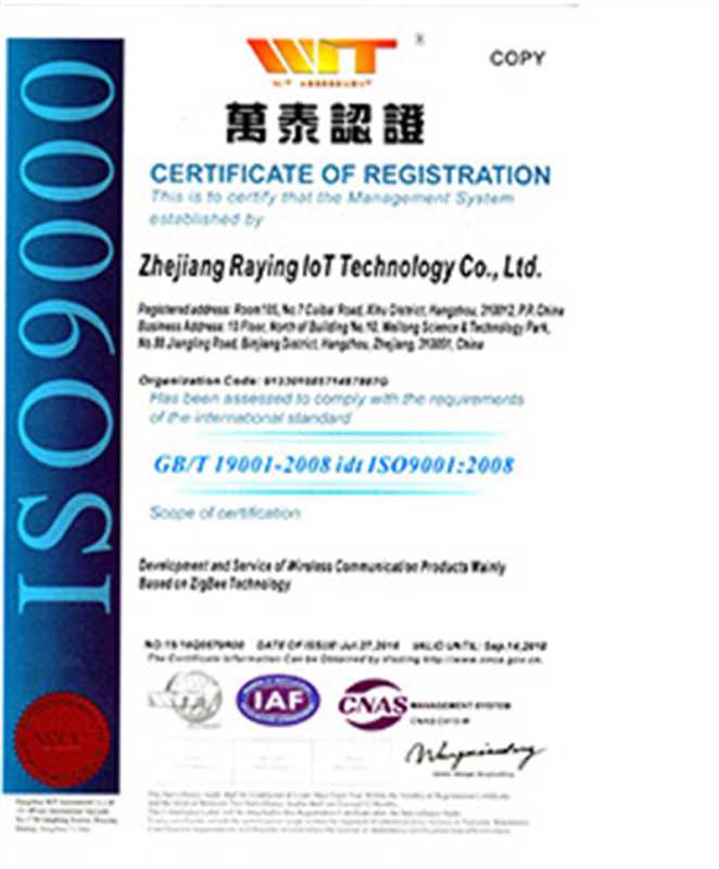 浙江瑞瀛物联科技有限公司(原浙江瑞瀛网络科技有限公司),注册资本2000万元,致力于以ZigBee为主的无线通讯系统领域产品的研究、开发、生产、销售与服务。公司位于杭州市国家级高新开发区内,公司视技术为企业的生命,努力打造世界一流的团队。公司所有研发与销售人员均为本科学历以上,并聘请多位行业内的资深人士从事研发。公司还与国内知名高校与科研机构建立了良好的合作关系,借助高校行业领域内的优势资源完成从科研成果到技术交流的转化,并在人才培养等方面进行深层次的合作。