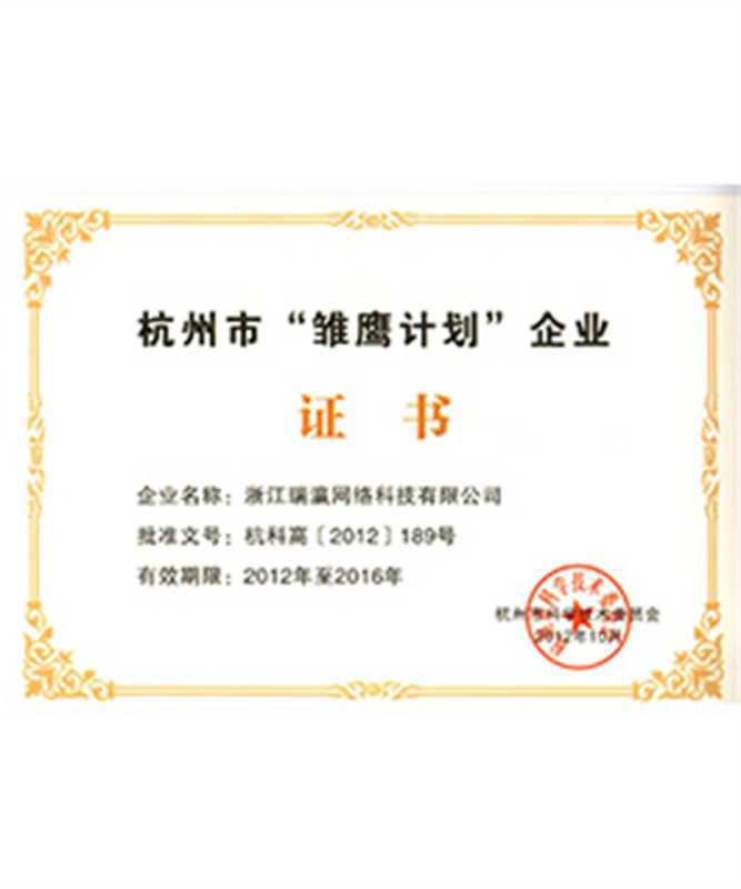 2012年获得杭州市“雏鹰计划”企业,国家高新技术企业认证,通过ISO9001认证。