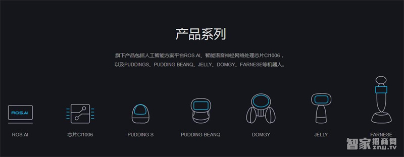 旗下产品包括人工智能方案平台ROS.AI、智能语音神经网络处理芯片CI1006,以及PUDDINGS、PUDDING BEANQ、JELLY、DOMGY、FARNESE等机器人。