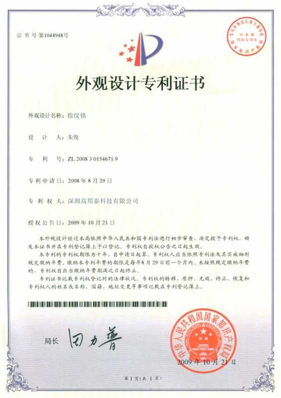 公司始终注重持续的研发与创新,生产的指纹锁、密码锁、感应锁等多个系列产品已经获得同行众多专业客户的广泛认同,形成了良好的口碑;广大消费者对本司的品牌及质量的认知度也越来越高;产品从外观到结构均拥有自己的专利,已获得国家外观专利、实用新型、发明专利几十余项,主要产品均已经获得FCC认证、CE认证、公安部智能锁防盗测试报告、防火测试报告等多项认证;公司秉承“科学管理,质量为先,高效优质,客户满意”的原则,为客户提供个性化方案设计、提供全方位的售前、售中、售后服务,让你锁事无忧;高邦泰将以市场为导向,以优质服务为保证,与您共同演绎美好的未来。