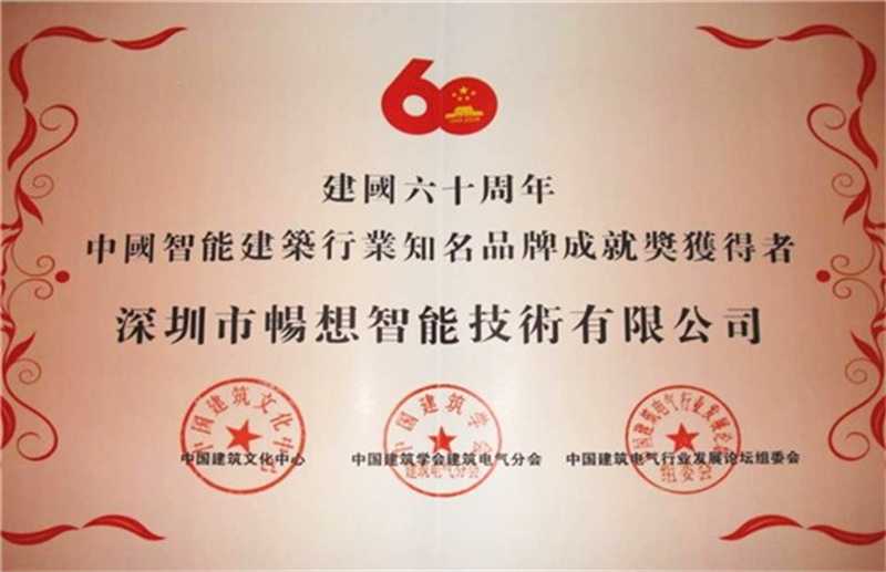 2009. 建国六十周年智能化建筑行业知名品牌成就奖