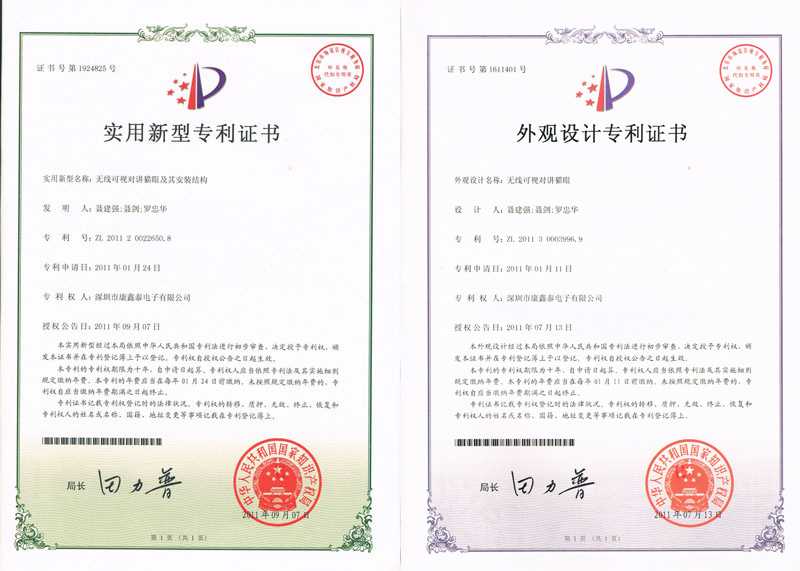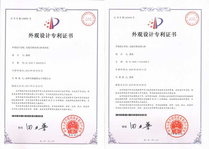 2011年自主研发出全球第一款7寸无线电子猫眼, 7寸无线可视门铃,并获得1项国家发明专利,1项国家实用新型专利,1项国家外观专利。