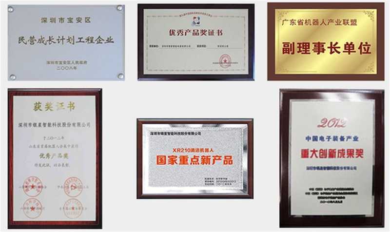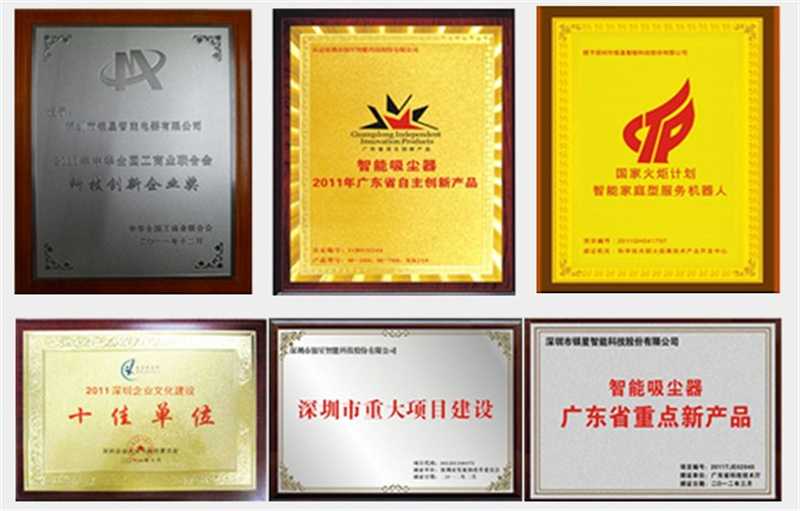 2011年,我公司智能型家庭服务机器人被列入《国家火炬计划项目》,并誉为《广东省重点新产品》和《广东省自主创新产品》;公司也荣获《2011全国工商联创新企业奖》、《2011深圳企业文化建设十佳单位》、《宝安区百家自主创新优势企业》。2012年,我公司服务机器人研发中心被列为《深圳市重大项目》。