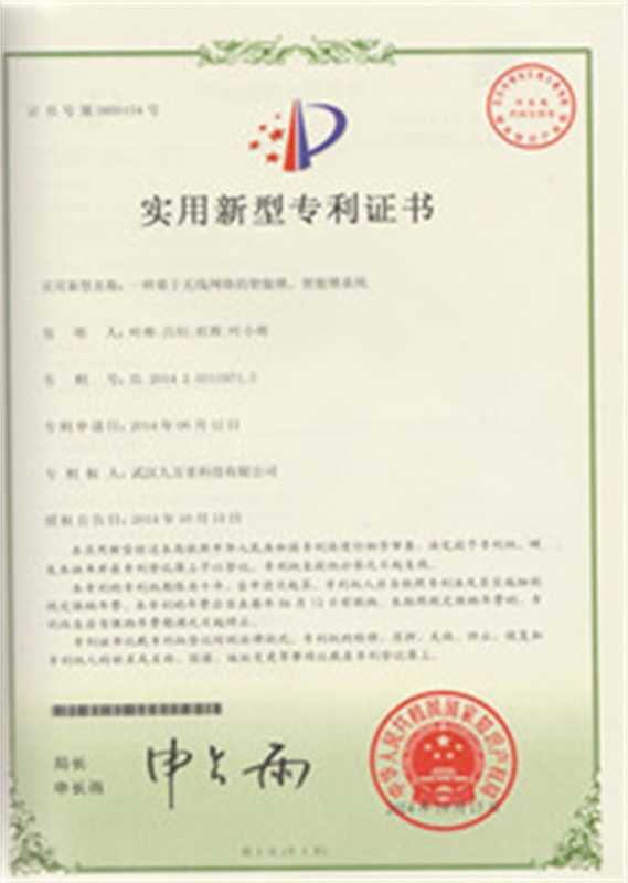 国家专利认证证书