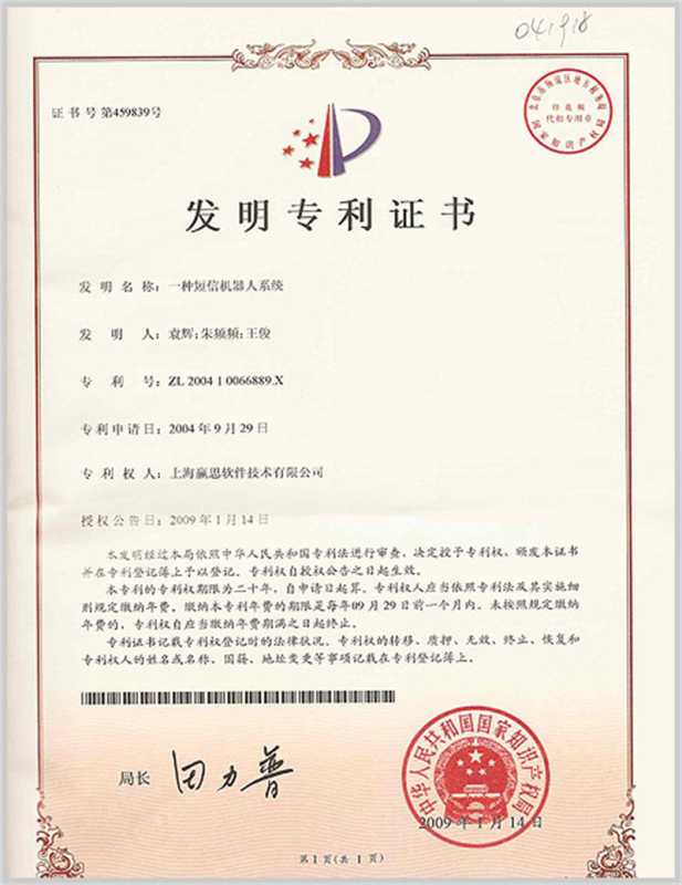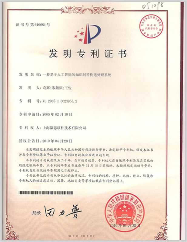 创新领先的中文智能人机对话引擎和关键技术发明专利