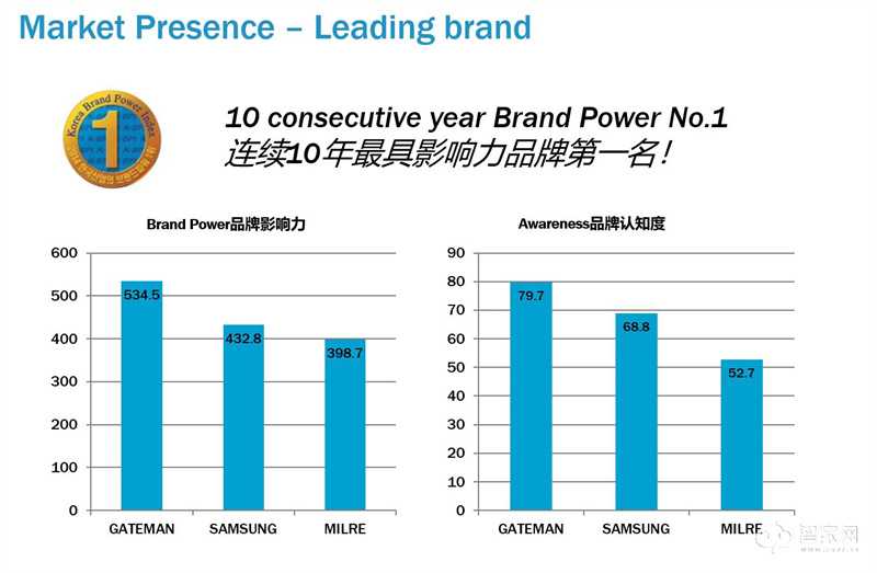 企业拥有韩国电子锁70%以上的占有率。GATEMAN(盖德曼)是iRevo的代表品牌。在韩国销量遥遥领先,品质指数第一位,顾客满意度第一位。