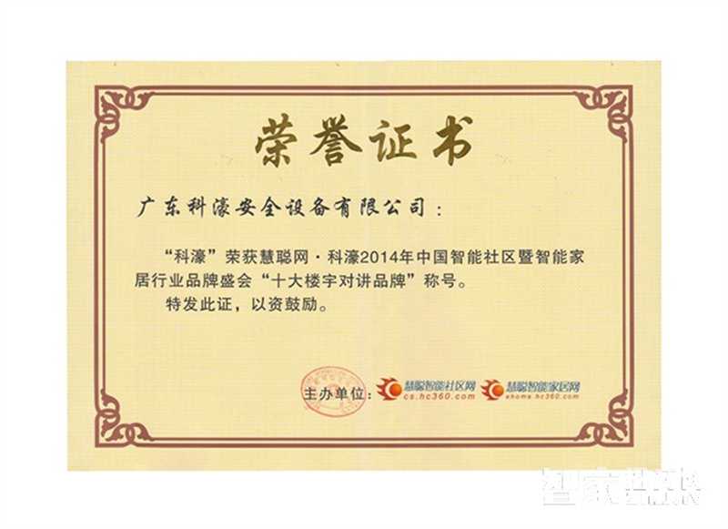 持续快速发展的科濠,已获得了行业内外的普遍认可。公司已全面通过ISO9001:2015质量管理体系认证,成为中国安全防范产品行业协会理事单位、中国建筑业协会智能建筑分会理事单位以及中国智能社区暨智能家居行业品牌盛会独家冠名企业,多年来持续荣获“中国安防知名品牌”、“中国安防十大用户满意品牌”“中国智能社区行业十大最具潜力品牌”“十大楼宇对讲品牌”“100家诚信品牌安防供应商”“中国安防十大诚信楼宇对讲品牌”“中国安防10大诚信智能家居品牌”“中国安防10大诚信楼宇对讲品牌”“中国安防十大楼宇对讲品牌”等荣誉称号及证书。