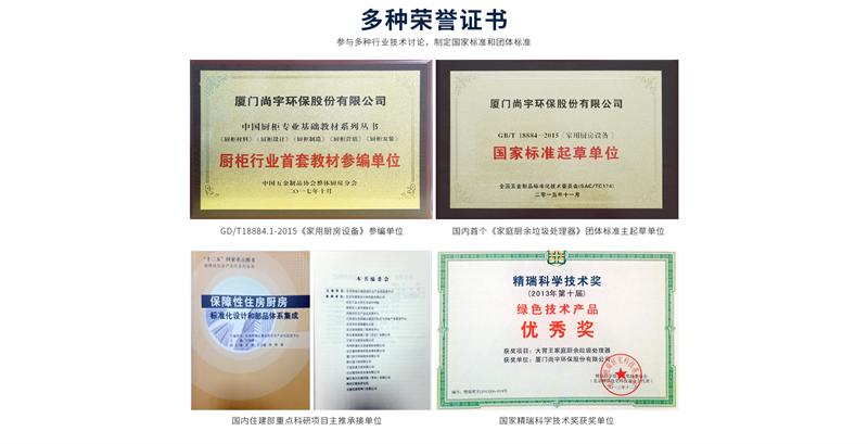 尚宇环保股份有限公司成立于2010年,专注于生活垃圾处理器研发和制造。是目前国内规模化、专业化程度较高的,拥有完善生活垃圾减量分类管控服务体系的高科技环保企业。公司位于厦门,拥有独立生产基地,年产量可达50万台以上,截至目前获得了1项国际发明专利、3项国家发明专利和17项实用新型专利以及正在通过申请的多项专利。
