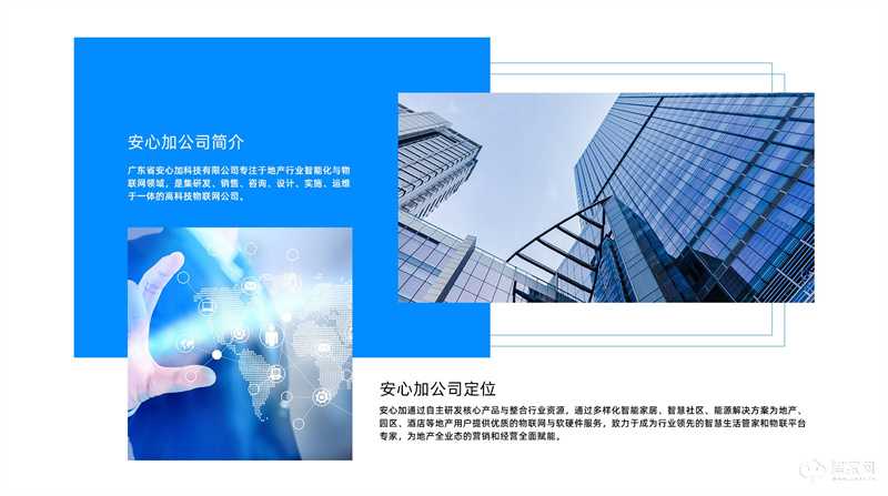 安心加(全称广东省安心加科技有限公司)是一家专注于地产行业智能化和物联网领域,集研发、销售、咨询、设计、实施、运维于一体的高科技公司,安心加也一直坚持以客户为中心,运用物联网、云计算、大数据、人工智能等技术,通过自主研发核心产品与整合行业资源,广泛服务于家庭、社区、楼宇、园区等场景,致力于成为智慧生活管家和物联平台专家,并为地产全业态的营销、管理和运营全面赋能。