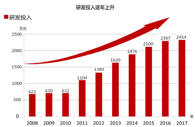 公司以高于年均销售收入15%的投入用于产品研发,且研发投入逐年上升,建立起专业的研发平台及高素质研发团队。目前企业人数已达100余人,研发人员约占公司总人数75%,本科及以上学历人员占比95%。