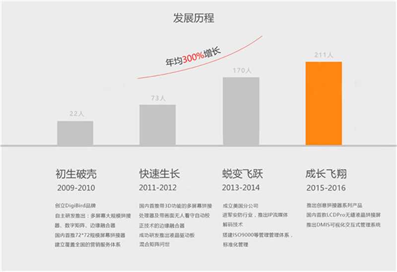 小鸟科技成立于2009年,通过不断的探索与创新,陆续推出了以多屏幕拼接器、多画面分割器、边缘融合器、创意拼接器等产品为基础的一系列国内领先的信号处理产品,广泛应用于军事、交通、政府、教育、电力、能源、传媒等领域。