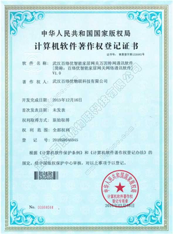 百络优坚持以工业芯做民用产品,已获得国家级专利百余种,成功研发九大智能家居系统,包括智能中央控制系统,智能照明系统,智能窗帘系统,智能安防系统,智能影音娱乐系统,智能家电控制系统,智能家庭能源系统,智能环境控制系统,智能健康检测系统。百络优与武汉大学,武汉理工大学,华中科技大学等多个高校联合成立了产学研基地。
