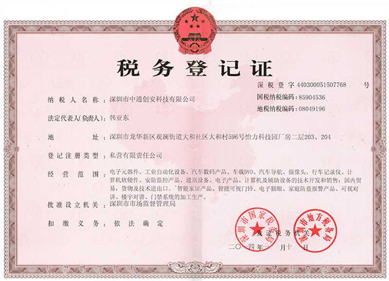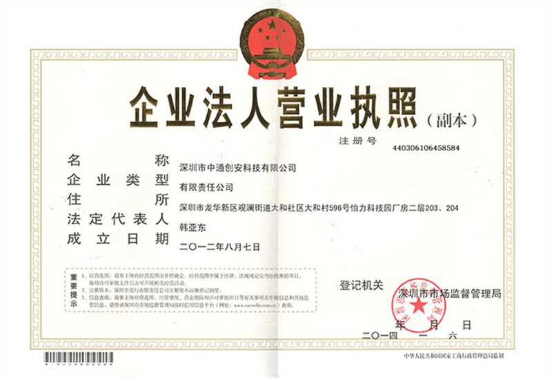 深圳市中通创安科技有限公司通过领先的研发实力,强大的生产实力和专业的售后服务,为国内客户提供精良的产品和优质的服务。近年来,中通创安先后通过了FCC/CE、ROSH、3C等认证,拥有国家专利80余项。得到了广大行业用户和经销商的认可。