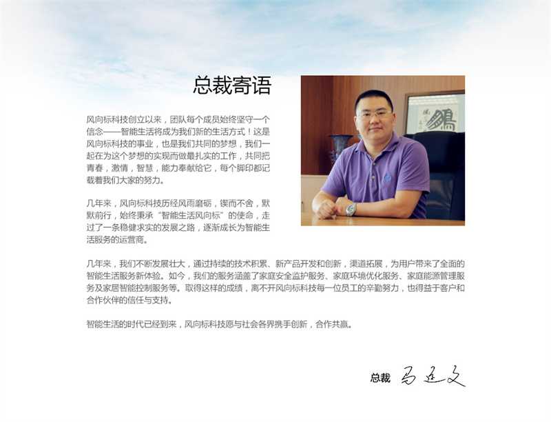 风向标科技总部坐落于浙江杭州,并在上海和深圳设有身公司,我们拥有一支专业性强、素质过硬的队伍,让风向标的用户真正体会到智能家居所带来的智慧型生活。