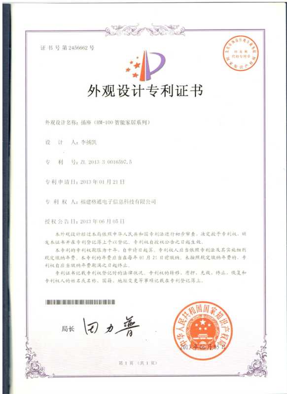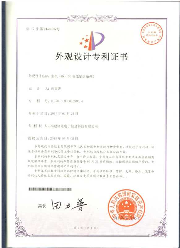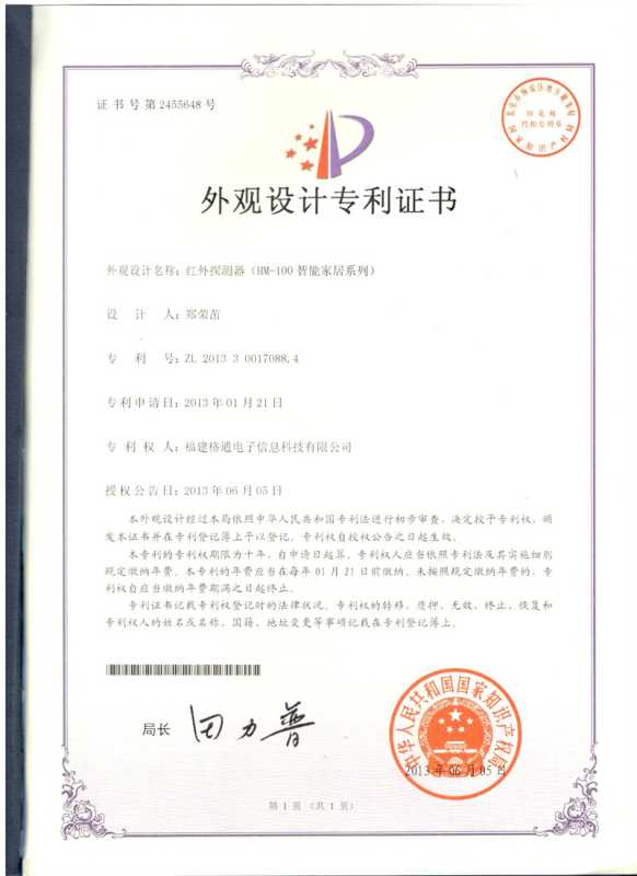 目前,公司硬件方面拥有完善的产品线,产品有200多款,可以满足一般家庭98%的智能化需求,软件方面支持GPS场景、Wi-Fi场景等潮流功能,且能适配Android及IOS系统,极具国际化特色。同时,公司专注于ZigBee技术智能家居产品的研发,格通科技首席技术官布兰卡·武切蒂奇教授是中科院第一批特聘外籍专家,在智能家居领域拥有一定的话语权。四年间,公司已成功申请,包括红外探测器、主机、插座在内的多项专利,在国内智能家居行业中,也处于绝对领先地位。成立至今获得“最具成长潜力的留学人员创业企业”、“最受欢迎智能家居品牌”、“2014年智能家居控制系统优秀品牌奖”等荣誉,及ISO9001管理体系认证、ISO20000 IT服务管理体系认证、ISO27001信息安全管理体系认证等多项资质证明。