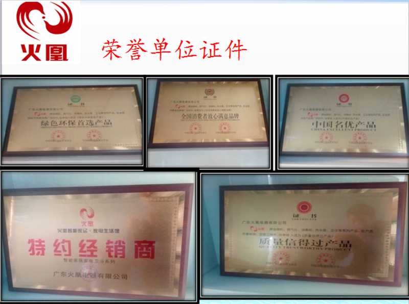 广东火凰电器有限公司本着以人为本、力求创新、实事求是、奋力拼搏的精神,广泛搜罗以及吸收国际厨电新技术、 新概念,选用优质的材料和安全环保工艺,"品质是生命、客户是上帝"的经营理念,指导产品的开发、生 产和销售,火凰智能家电简单、安全,舒适等诸多优点,使它成为众智能家居家电品牌中的佼佼者。本公司生产的智能家电,无论从品质和造型等方面得到了完美体现,并获得了多项国家专利。火凰产品的设计造型合理,工艺制作严谨,用料精良,以确保整体的稳定性和安全性。