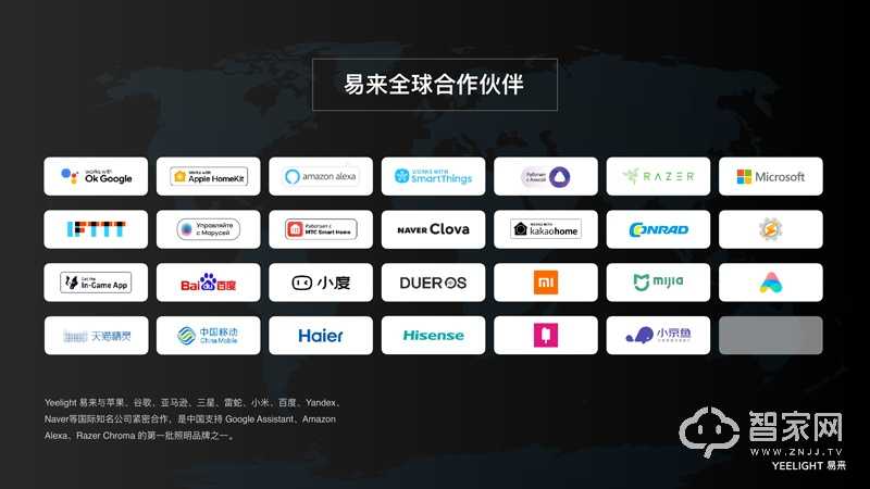Yeelight易来与苹果、谷歌、亚马逊、三星、雷蛇、百度、Yandex等国际知名公司紧密合作,是中国支持 Google Assistant、Amazon Alexa、Razer Chroma 的首批照明品牌之一。