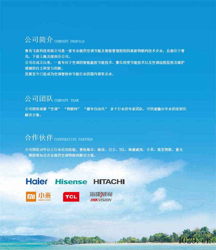 青岛飞奕科技有限公司是一家专业提供空调节能及智能管理控制的高新物联网技术企业,总部位于青岛,下设上海及深圳分公司。 公司自成立以来,一直专注于空调的智能温控节能技术、雾化相变节能技术以及空调远程监控及维护领域的自主研发与创新。 发展至今已经成为空调智控和节能行业的国内领军企业。