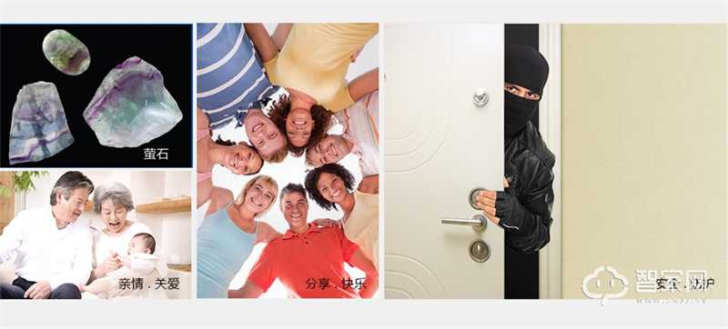 萤石“四色石环绕标志”中,蓝色萤石寓意“智慧、科技”;绿色萤石寓意“安全、便捷”;黄色萤石寓意“阳光、美好”;紫色则寓意“分享、守护”,让幸福传递、放大。