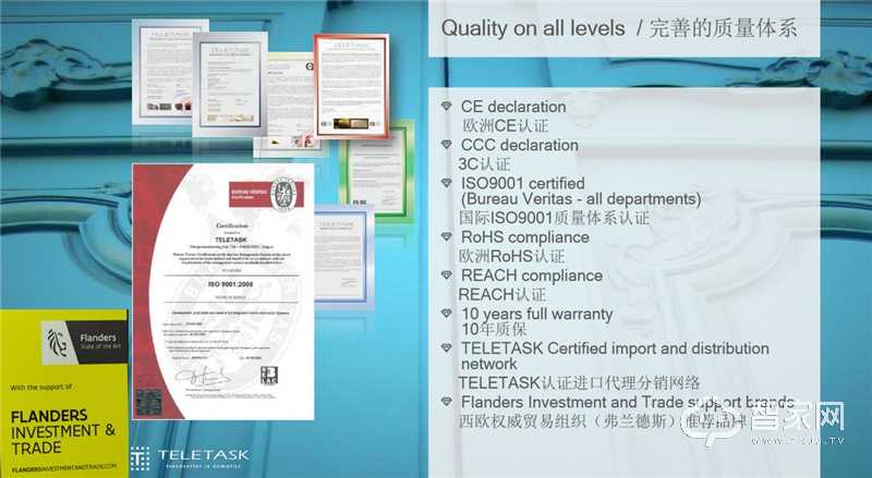 TELETASK(唐太子)是一家通过国际ISO9001认证的企业,总部位于比利时根特(Gent/Belgium)。智能家居产品的设计和制造是我们的核心业务。我们拥有一个全球认证运营商和系统集成商网络,提供高品质的售前和售后服务解决方案。