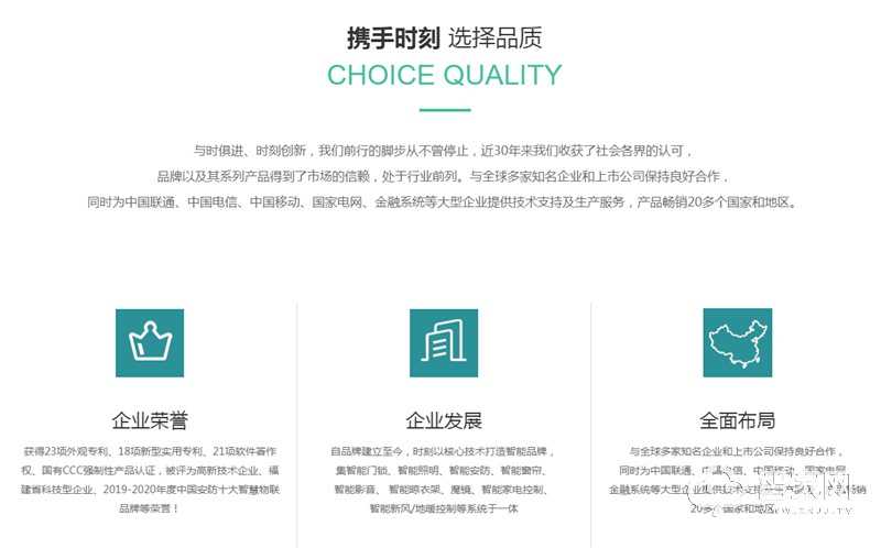 福建时刻智能科技有限责任公司,创建于1992年,是一家集研发、生产、销售、服务于一体的高新技术企业。公司产品涉及智能家居、防盗报警控制器、防火防盗探测器、电子仪器、安防电子产品硬件及软件等。2017年,公司在多年安防专业的基础上,重金投入对智能家居的研发和生产。