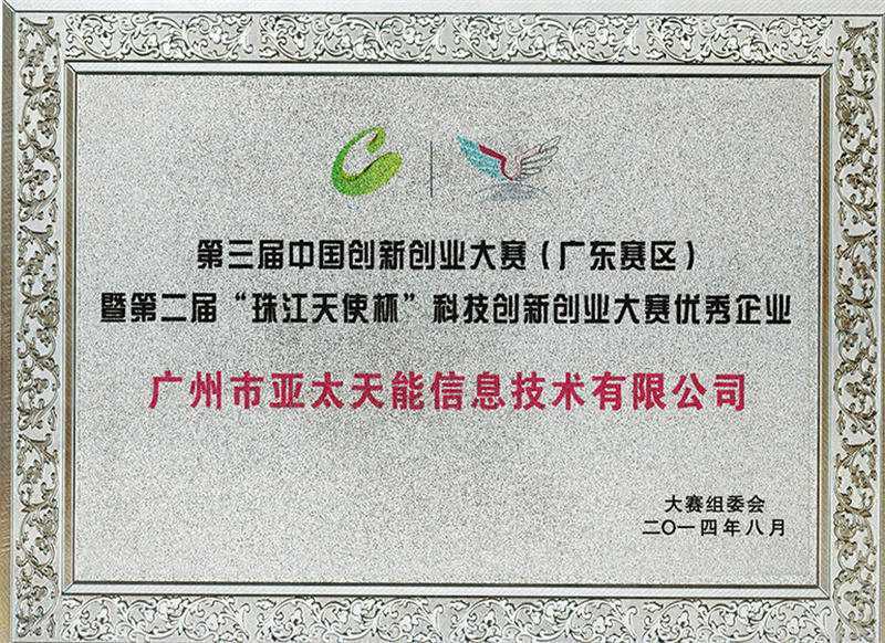 2014年8月:亚太天能获得第三届中国创新创业大赛(广东赛区)暨第二届“珠江天使杯”科技创新创业大赛优秀企业荣誉。