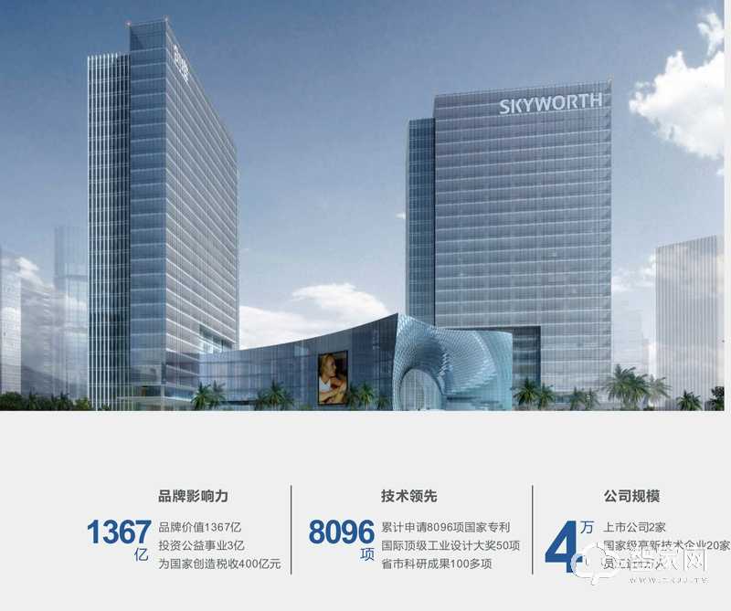 创维集团有限公司(Skyworth Group Co.,Ltd)成立于1988年,主要从事多媒体(智能电视、内容运营业务)、智能电器(冰箱、洗衣机、空调、厨电等业务)、智能系统技术、现代服务业等四大业务,集团旗下有创维集团(H00751)和创维数字(000810)两家上市公司,若干国家高新技术企业,设有国家级企业技术中心、国家级工业设计中心,是“中国制造2025”首批示范单位,连续多年位列中国电子百强企业前列。